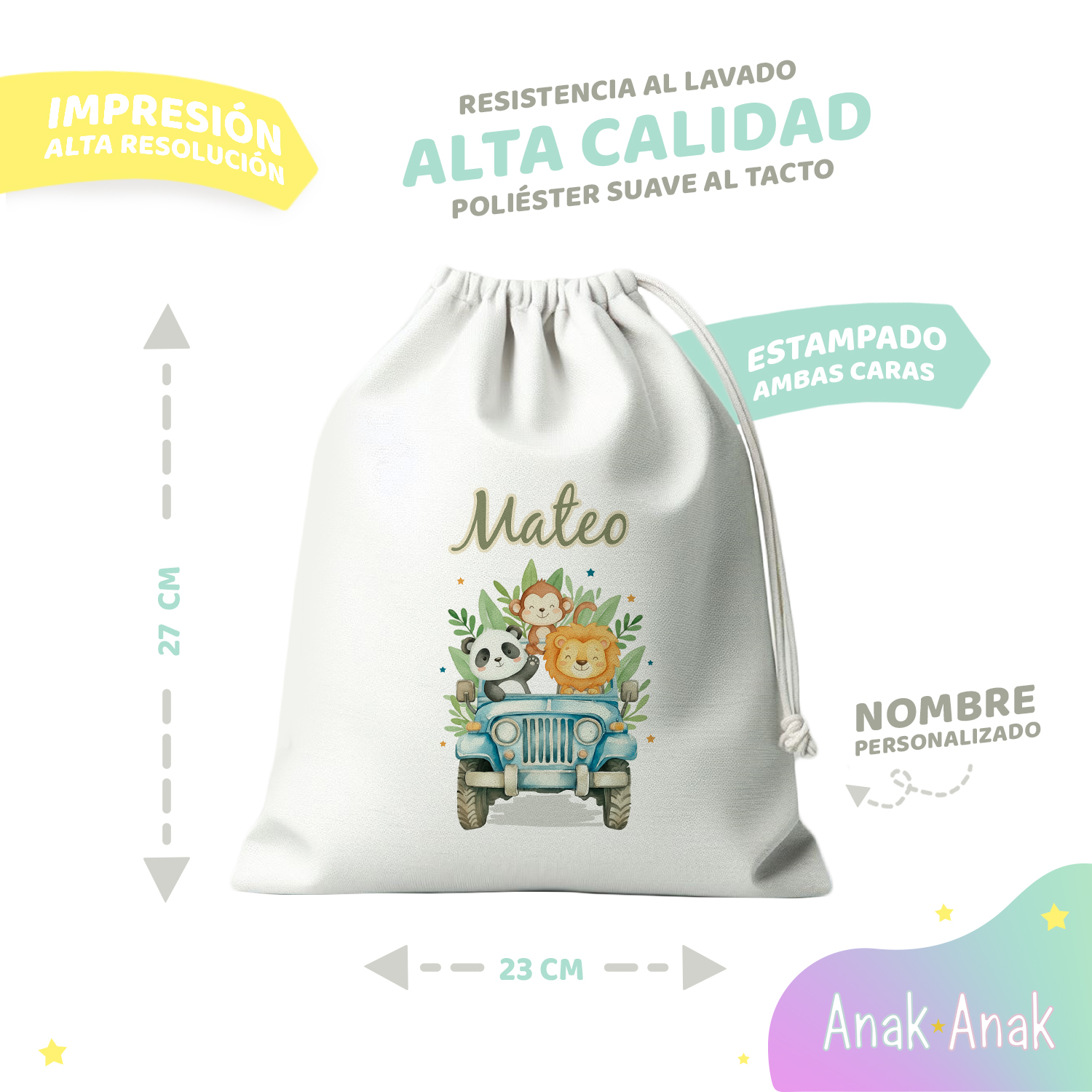 Esta bolsita está fabricada en poliéster de alta calidad que ofrece un tacto suave y agradable, con un acabado brillante. Debido a la buena calidad de sus materiales, se puede lavar tanto a mano, como en lavadora y cuenta con costura reforzada para asegurar una mayor durabilidad, cierre ajustable de cuerdas tipo saco, esta bolsa es cómoda y segura para que los niños puedan llevarla fácilmente.