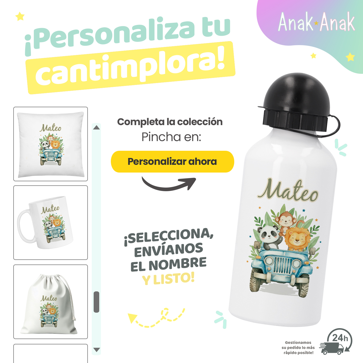 Esta bonita y elegante cantimplora infantil personalizada «Safari Aventura» es el regalo perfecto para los niños. Tiene un diseño llamativo, es útil y muy práctica de llevar a cualquier lugar, ya que posee el tamaño ideal.