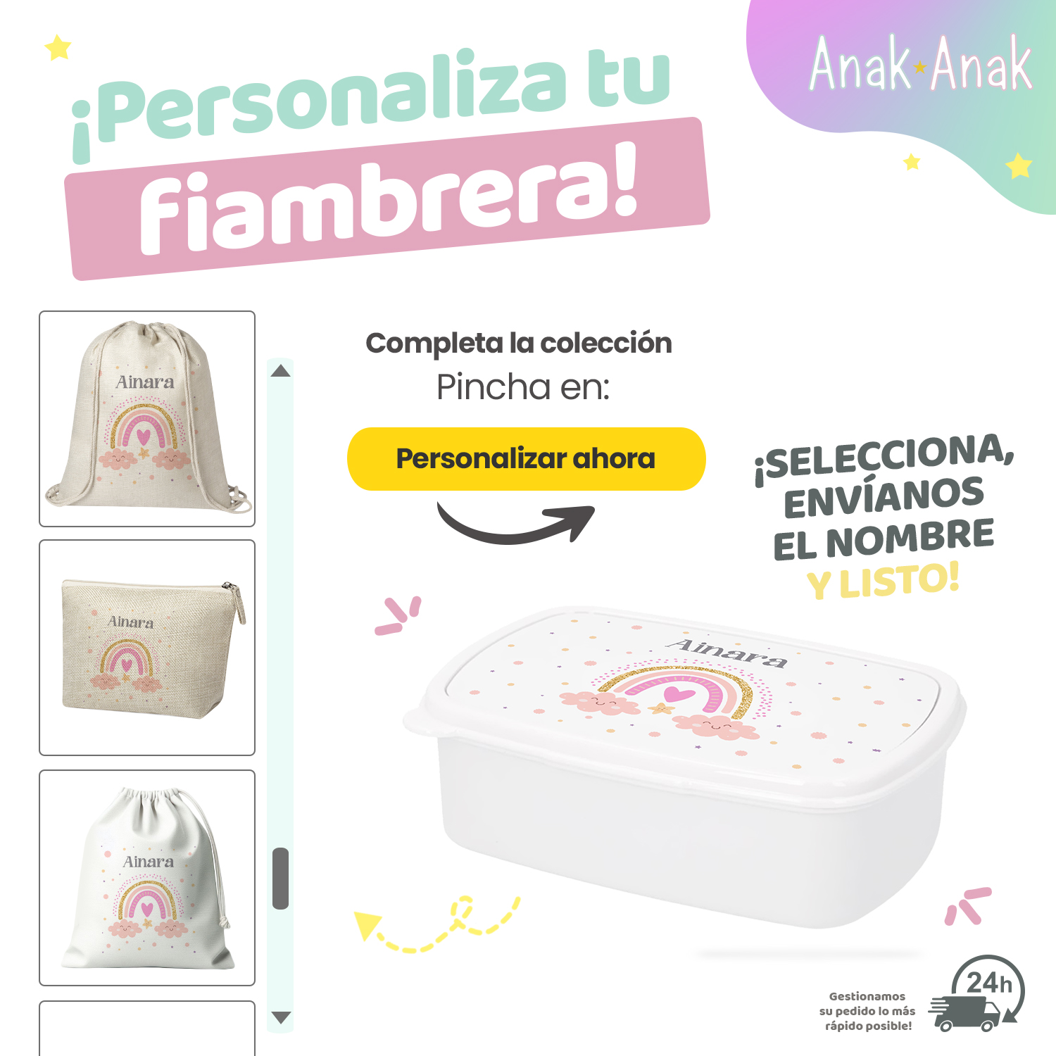 Haz que la hora del almuerzo sea más divertida y especial con nuestra Fiambrera Personalizada Arcoíris Rosa. Ideal para el colegio, guardería, excursiones o picnics, esta fiambrera combina funcionalidad, diseño y un toque único que encantará tanto a niñas como a padres. Con sus colores alegres y su tapa decorada con un diseño personalizado, los peques disfrutarán cada día llevando su comida o merienda.