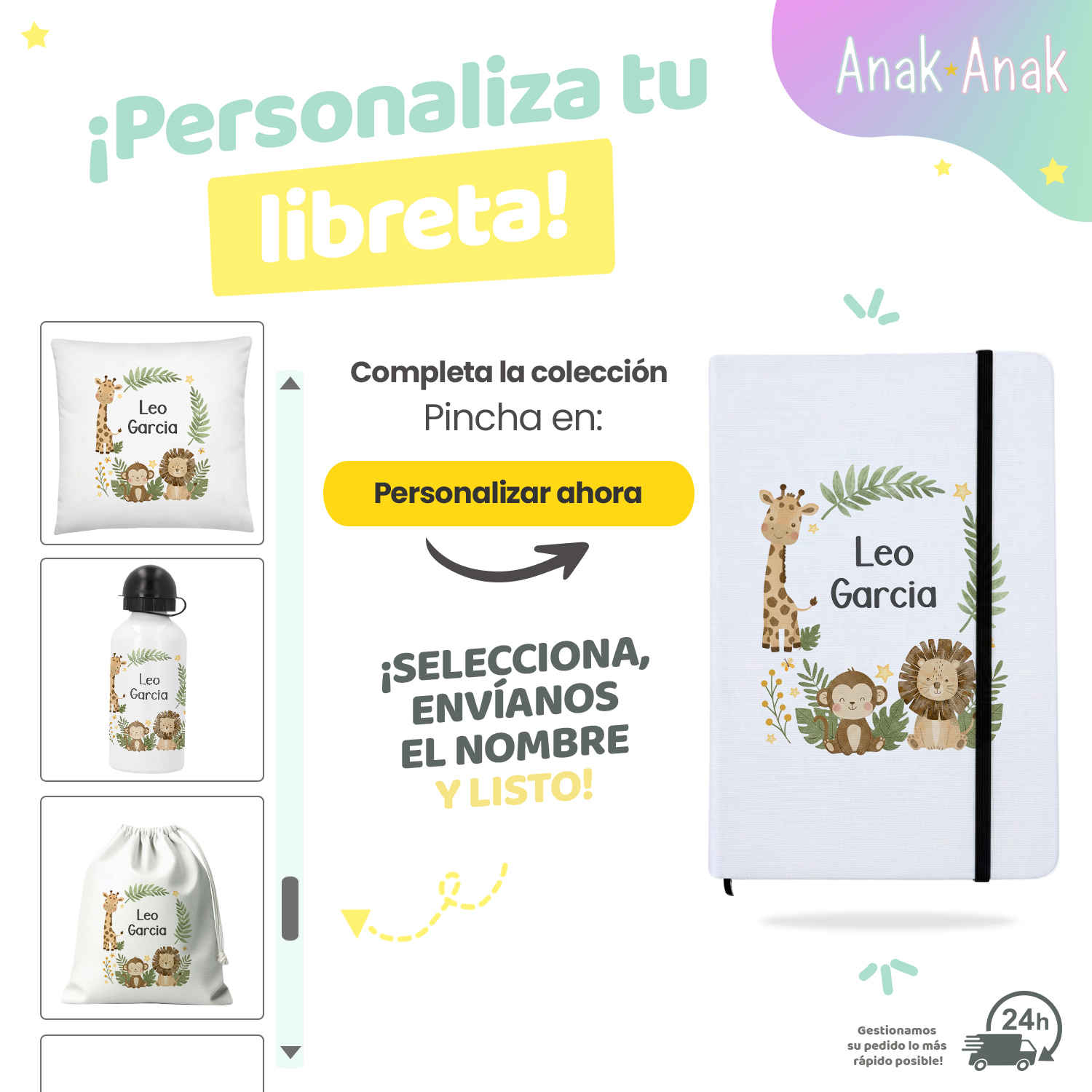 Cada Libreta Personalizada con nombre Animales de la Selva se crea especialmente para ti. Solo tienes que indicar el nombre del niño, y nuestro equipo lo imprimirá con mimo en la portada. Es un detalle único que encantará tanto a pequeños como a mayores, ideal para cumpleaños, regreso a clases o como obsequio original.